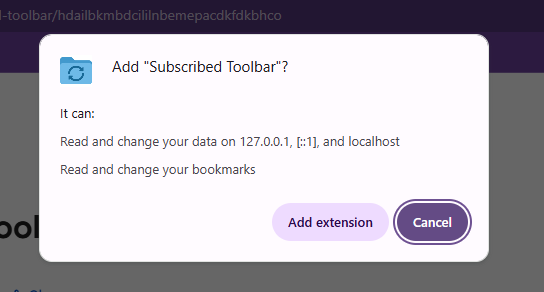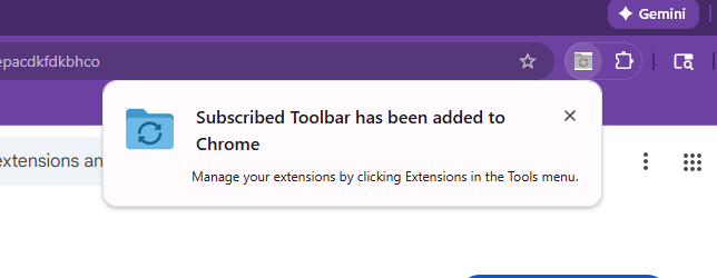 After installation, Chrome will usually show a small notification confirming that Subscribed Toolbar has been added.