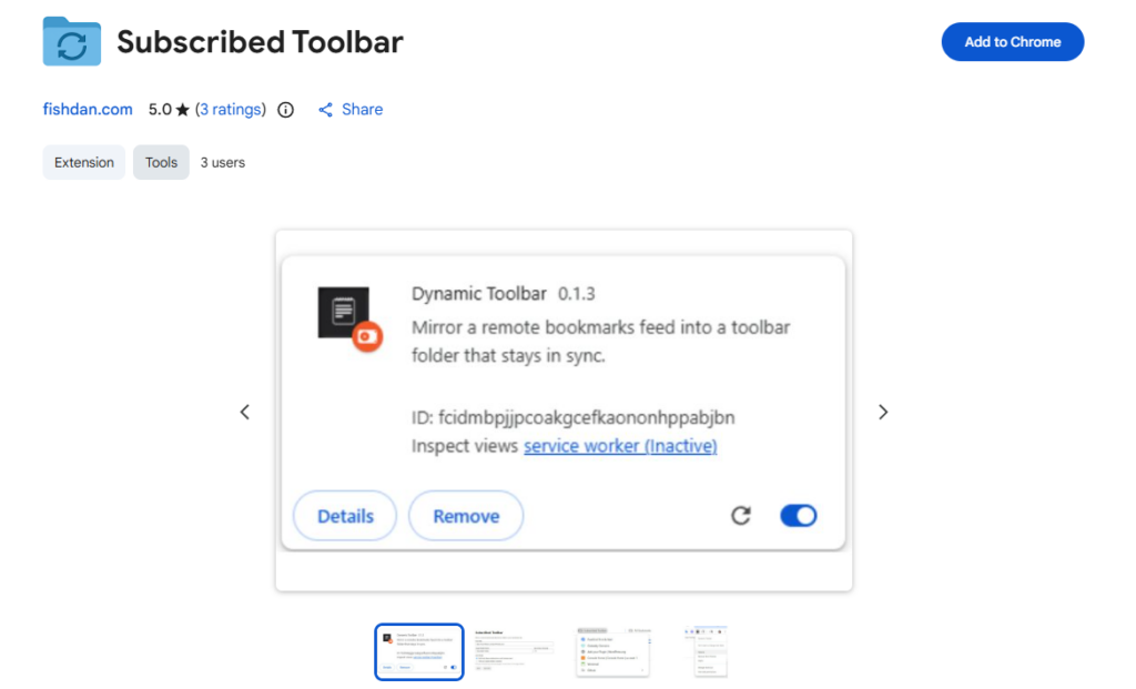 Open the Subscribed Toolbar listing in the Chrome Web Store.